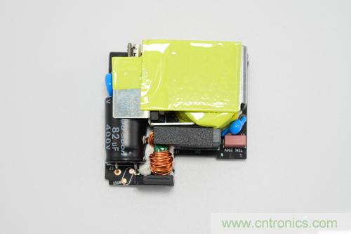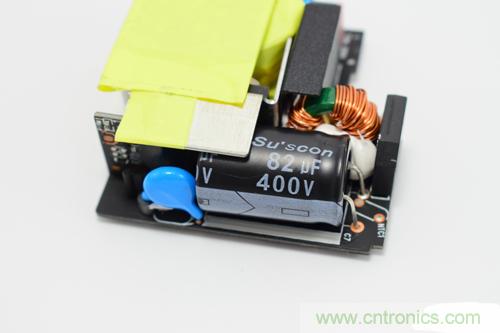 全橋整流后的一次側(cè)濾波電源為一枚82μF/400V 電容,來(lái)自SUSCON(臺(tái)灣冠坤)。從此角度看,屬于保護(hù)電路的NTC空缺未安裝。