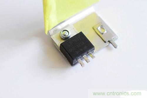 分離塑膠封套后,可見(jiàn)PCB小板上有IC和MOSFET各一。