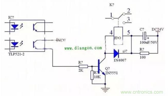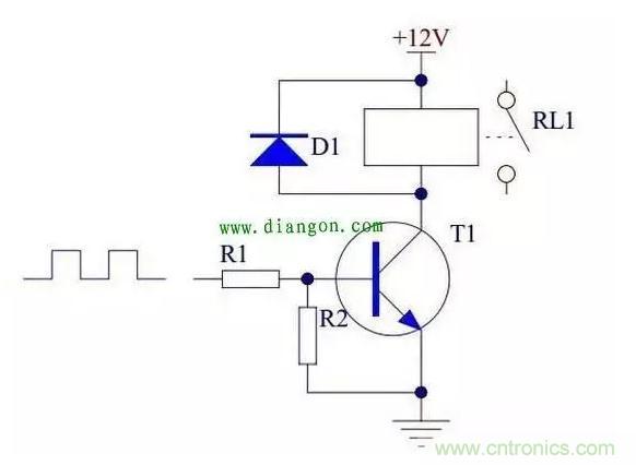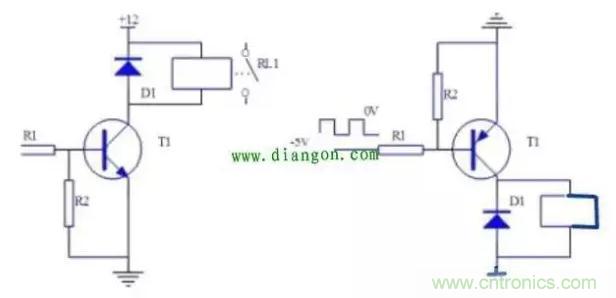 當(dāng)晶體管用來驅(qū)動(dòng)繼電器時(shí),必須將晶體管的發(fā)射極接地。具體電路如下: