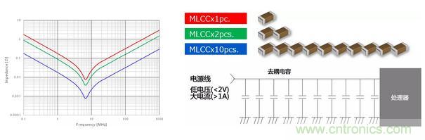 為了抑制電壓波動(dòng),會(huì)使用多個(gè)去耦用MLCC