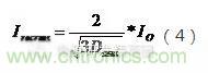 流過輸出整流器的有效值電流與峰值電流的關(guān)系:
