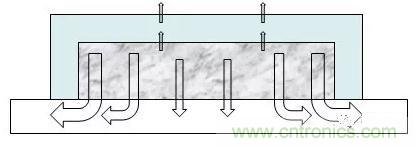 功率MOSFET內(nèi)部通常是由許多晶胞單元并聯(lián)而成,如圖2所示。通常假定芯片內(nèi)部處于理想的熱平衡狀態(tài),整個硅片的結(jié)溫完全一致。然而在實(shí)際條件下,硅片邊沿?zé)嶙璧?,如圖3所示;由于硅片焊接的不均勻,各局部區(qū)的熱阻也不一致;此外,各局部區(qū)的閾值電壓VTH也不完全相同,它們通過的漏極電流,也就是(VGS-VTH)和跨導(dǎo)乘積,也不完全相同。上述因素導(dǎo)致局部區(qū)溫度也不一樣。