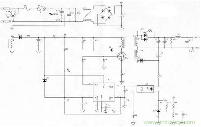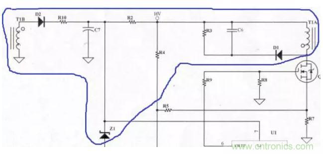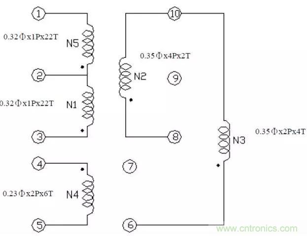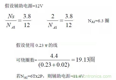 依據(jù)變壓器的圈比關(guān)系,可決定輔助電源的圈數(shù)及電壓。