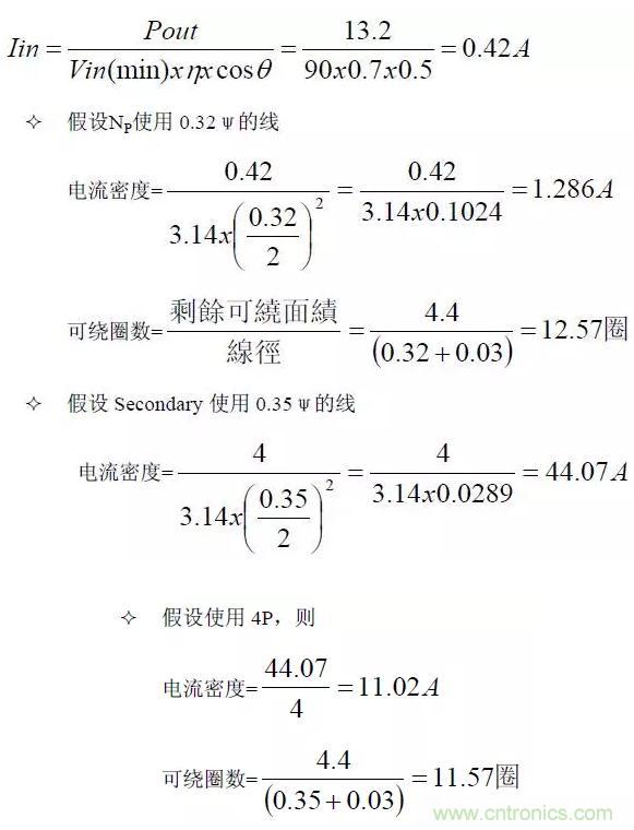 決定變壓器線徑及線數(shù):