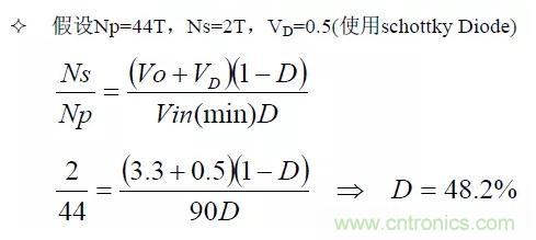 由以下公式可決定Duty cycle ,Duty cycle的設(shè)計(jì)一般以50%為基準(zhǔn),Duty cycle若超過(guò)50%易導(dǎo)致振蕩的發(fā)生。