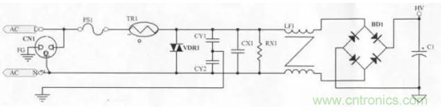 當(dāng)雷極發(fā)生時(shí),可能會(huì)損壞零件,進(jìn)而影響Power的正常動(dòng)作,所以必須在靠AC輸入端 (Fuse之后),加上突波吸收器來(lái)保護(hù)Power(一般常用07D471K),但若有價(jià)格上的考量,可先忽略不裝。