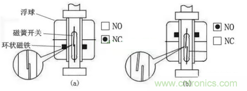 雙浮球內(nèi)部開關(guān)原理如下: