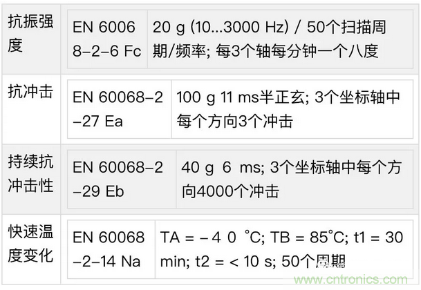 標(biāo)準(zhǔn)文件冗長(zhǎng),因?yàn)橛袠?biāo)準(zhǔn)可查看,就不一一具體說明了。這里除了可以去看看EN60068這個(gè)標(biāo)準(zhǔn)文件,選型的時(shí)候?qū)δ彩怯袔椭?,特別是如果您的產(chǎn)品應(yīng)用有震動(dòng)例如振動(dòng)臺(tái)、抗沖擊例如機(jī)車床設(shè)備等等,或者環(huán)境使用溫度有高低溫要求的時(shí)候,這時(shí)這些標(biāo)準(zhǔn)的符合性就是您選型首要依據(jù)了。