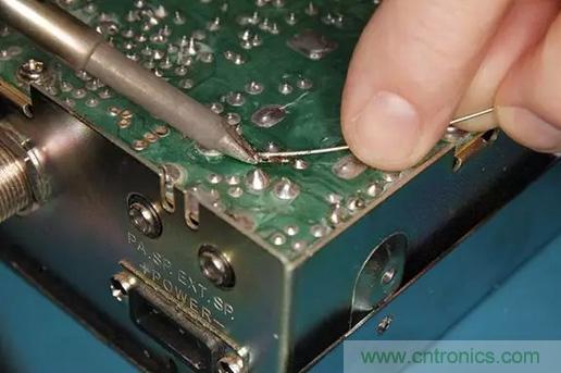 在完成銅走線鍍錫后,用一跟實(shí)心導(dǎo)線(也稱(chēng)作母線)焊接到開(kāi)路走線的一個(gè)端點(diǎn)。