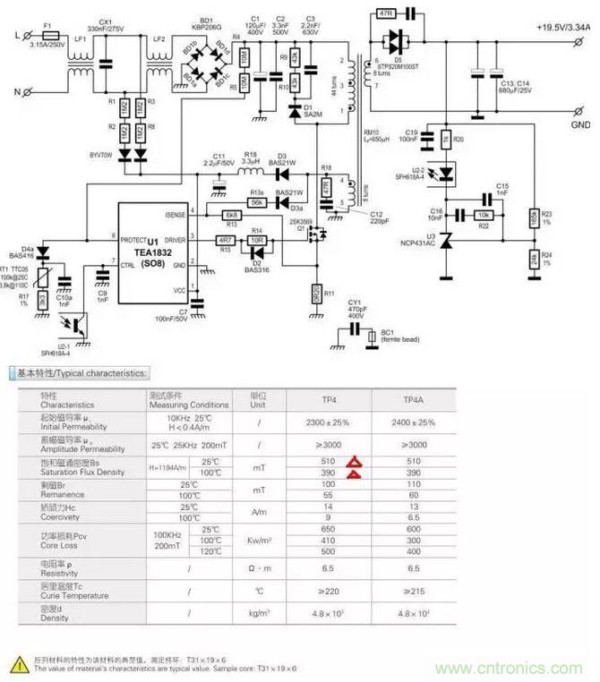 借鑒下NXP的這個TEA1832圖紙做個說明。分析里面的電路參數(shù)設計與優(yōu)化并做到認證至量產(chǎn)。 在所有的元器件中盡量選擇公司倉庫里面的元件,和量大的元件,方便后續(xù)降成本拿價格。