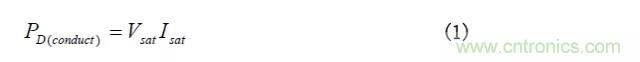 導(dǎo)通損耗可由開(kāi)關(guān)兩端電壓和電流波形乘積測(cè)得。這些波形都近似線性,導(dǎo)通期間的功率損耗由式(1)給出。