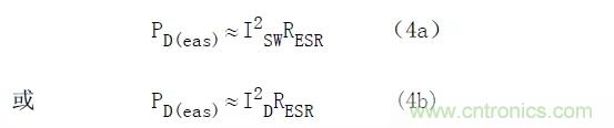 輸入輸出電容是功率開(kāi)關(guān)或輸出整流器產(chǎn)生的高頻電流的唯一來(lái)源(或儲(chǔ)存處),所以通過(guò)觀察這些電流波形可以合理地確定流過(guò)這些電容ESR的電流。這個(gè)電流不可避免地在電容內(nèi)產(chǎn)生熱量。設(shè)計(jì)濾波電容的主要任務(wù)就是確保電容內(nèi)部發(fā)熱足夠低,以保證產(chǎn)品的壽命。式(4)給出了電容的ESR所產(chǎn)生的功率損耗的計(jì)算式。