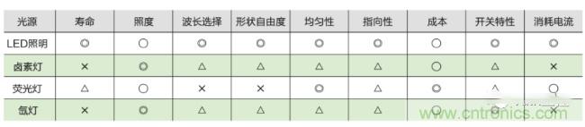 通過以上表格我們看到LED照明具有:形狀自由度高、光的指向性強、波長可選擇、長壽/高效卻低功率、響應(yīng)速度快、開關(guān)性能好等特點。