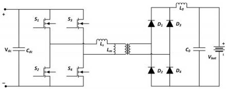由于電動(dòng)汽車電池不能接地,因此需要在電網(wǎng)和電池之間進(jìn)行電隔離,電池和電?之間的隔離可確保充電期間對(duì)電池的保護(hù)。電動(dòng)汽車DCFC的大功率DC-DC轉(zhuǎn)換必須進(jìn)?隔離,?功率快速充電樁(25kW-350kW)可采用全橋LLC拓?fù)洹⑾嘁迫珮蛲負(fù)?、雙有源橋(DAB)和雙有源橋CLLC拓?fù)洹H珮騆LC拓?fù)浜拖嘁迫珮蛲負(fù)浒渭?jí)全橋整流器。