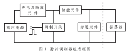 脈沖調(diào)制器主要由調(diào)制開關(guān)、儲能元件、充電及隔離元件、旁通元件等四部分組成,如圖1所示。