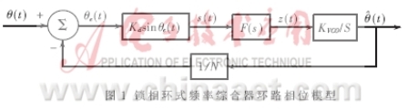 典型的分頻式鎖相環(huán)路包括檢相器(PHD)、電壓控制振蕩器(VCO)、環(huán)路濾波器(LPF)和可編程數(shù)字分頻器(1/N)。圖1是最簡易的鎖相式頻率合成器的相位模型圖。一個高精度穩(wěn)定參考信號fi輸入至檢相器,與1/N分頻后的電壓控振蕩信號f0/N檢相,產(chǎn)生一個電平隨兩個信號之間的相位的偏差而變化的誤差電壓。經(jīng)過濾波后誤差信號作為電壓控制振蕩器的控制電壓,使得壓控振蕩器輸出f0=Nfi。鎖相環(huán)具有高穩(wěn)定度,一旦完成相位鎖定,環(huán)路將會無限時保持鎖定狀態(tài)。如果電壓控制振蕩器頻率發(fā)生偏移,就會導(dǎo)致控制電壓發(fā)生變化,而這種變化又使得整個環(huán)路再重新回到鎖定狀態(tài)。同時由于分頻式設(shè)計,f0的抖動Δf經(jīng)N次分頻后到達檢相器,也降低了對VCO的穩(wěn)定性要求。通過改變分頻器分頻比,可以鎖相倍頻在不同的頻率上。分頻鎖相倍頻具有諸多優(yōu)點,在高頻率微波信號發(fā)生器設(shè)計中廣泛應(yīng)用。