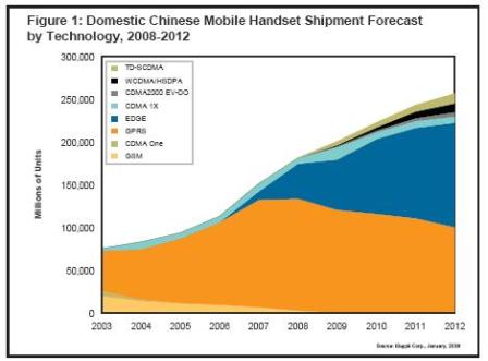 2008年中國經(jīng)授權(quán)的國內(nèi)市場出貨量預(yù)計超過1.8億部。同時,2008年國內(nèi)灰市將從2007年的5000萬部以上減少到4000萬部。許多灰市供應(yīng)商變成了經(jīng)授權(quán)的品牌廠商,他們的業(yè)務(wù)在三線和四線城市與農(nóng)村市場顯著增長。