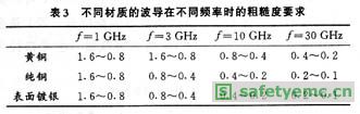 波導(dǎo)表面粗糙度越低,加工難度越大,制造成本也越高。為了降低成本、提高經(jīng)濟(jì)效益,在不同頻段,控制波導(dǎo)管表面粗糙度的要求是不同的。頻率越高,波長越小,粗糙度值要求也越低。表3為實(shí)際工作中總結(jié)出的銅、黃銅、鍍銀波導(dǎo)在不同頻率時的粗糙度要求,可作為設(shè)計(jì)時的依據(jù)。