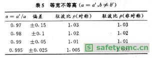 以23mm×10mm的波導(dǎo)為例,在f=10GHz時不同類型的安裝誤差所引起的駐波比見表4-表7。