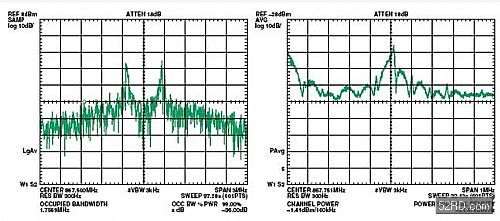 量測(cè)程序要求發(fā)射器需要在最大輸出功率的情況下開關(guān)5次,并分別量測(cè)落入載波兩側(cè)的第二階、第四階、及第十階頻道。