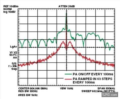 工程人員也需要了解到歐洲法令中,一項(xiàng)加諸在暫態(tài)功率上的限制新規(guī)格,也就是當(dāng)發(fā)射器在正常運(yùn)作中開關(guān)時(shí),落入臨近頻譜的功率。將此限制加入最新法令中的目的,是要避免頻譜飛散(spectralsplatter)。