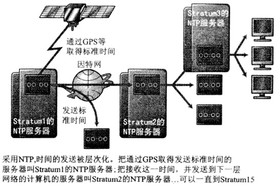 隨著通信網(wǎng)日益IP化,通過IP網(wǎng)絡,使用NTP(NetworkTimeProtocol,網(wǎng)絡時間協(xié)議,RFC1305)修正通信系統(tǒng)內(nèi)部時間。NTP采用客戶機/服務器模型,NTP服務器端口等待發(fā)送到此端口的UDP報文,響應其他設備作為客戶機向NTP服務器發(fā)送請求,發(fā)送32位整數(shù)表示的當前時間報文、計算精確度和穩(wěn)定度的信息,客戶端接受信息后調(diào)整本地時間。