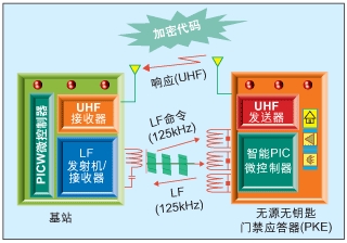 在這些應(yīng)用中,基站用125 kHz頻率發(fā)送命令,同時(shí)等待附近的有效應(yīng)答器以UHF頻率發(fā)回響應(yīng)。智能應(yīng)答器一般處于接收模式并等待任何有效的125kHz基站命令。如果接收到任何有效的基站命令,應(yīng)答器以UHF頻率發(fā)送響應(yīng)。這就是我們所說的“無源無鑰匙門控系統(tǒng)”。由于PKE系統(tǒng)采用125kHz電路進(jìn)行雙向通信,因此低成本、小體積及低功耗PKE應(yīng)答器可使用含有數(shù)字與低頻前端的集成系統(tǒng)級芯片(SoC) 智能微控制器單元(MCU)來生產(chǎn)。