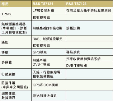 一些更新的應(yīng)用包括用于確保轎車和卡車安全的胎壓監(jiān)測(cè)系統(tǒng),以及可靠地實(shí)現(xiàn)電視接收的DVB-T接收機(jī)。在某些情形下,具備射頻接口的診斷系統(tǒng)已經(jīng)被安裝在汽車維修中心和應(yīng)急支援中心。其它應(yīng)用還包括:用于監(jiān)測(cè)發(fā)動(dòng)機(jī)艙溫度、壓力和速度參數(shù)的傳感器。