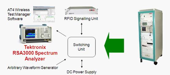 圖6:基于泰克實(shí)時(shí)信號(hào)分析儀的RFID認(rèn)證測(cè)試系統(tǒng)。