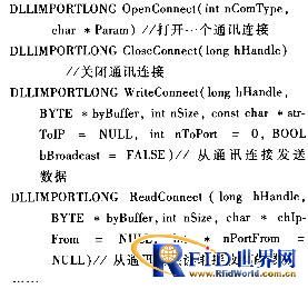 (1)底層數(shù)據(jù)通訊接口組件:負(fù)責(zé)數(shù)據(jù)通訊的鏈路層和物理層,是讀寫器與應(yīng)用軟件通訊的物理基礎(chǔ),在應(yīng)用邏輯上,與應(yīng)用通訊協(xié)議無(wú)關(guān)。所以,底層數(shù)據(jù)通訊應(yīng)獨(dú)立設(shè)計(jì)相對(duì)固定的接口,與高層應(yīng)用分離。