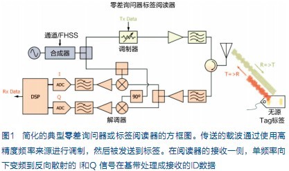 最簡單的RFID系統(tǒng)由一個(gè)標(biāo)簽(可以是無源標(biāo)簽)和一個(gè)閱讀器組成。從結(jié)構(gòu)上看,無源標(biāo)簽的讀取與傳統(tǒng)全雙工數(shù)據(jù)鏈路略有不同。與傳統(tǒng)有源數(shù)據(jù)鏈路不同的是,無源標(biāo)簽依賴其收到的RF能量為自身供電。無源標(biāo)簽同樣不會(huì)生成自己的傳送載波信號(hào),而是調(diào)制詢問器發(fā)送到標(biāo)簽的部分能量,這一過程稱為反向散射。