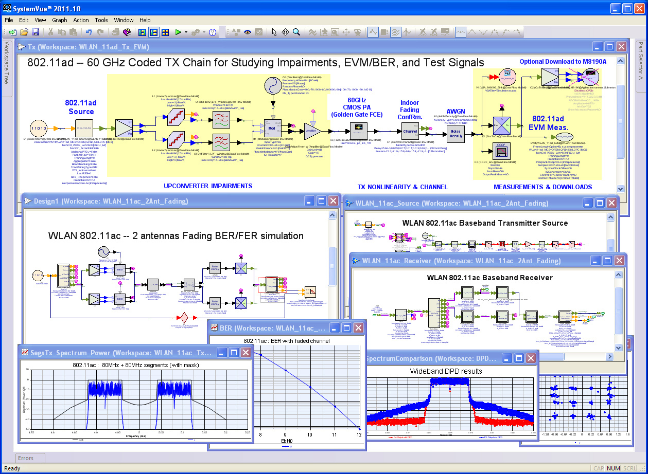 利用這個(gè)新程序庫(kù),系統(tǒng)架構(gòu)師現(xiàn)在可以查看 802.11ac 算法和模型的系統(tǒng)級(jí)效率,信號(hào)質(zhì)量的預(yù)失真、減損、干擾和衰落,以及比特誤碼率。
