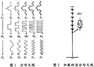 由于單純的RLC加載對小型化天線設計具有局限性。在保證一定效率的前提下,要進一步減小單極子天線的尺寸,還需要做進一步的研究。其中彎折線天線和分形天線是適應設計發(fā)展的又一技術(shù)方法。如圖1所示。