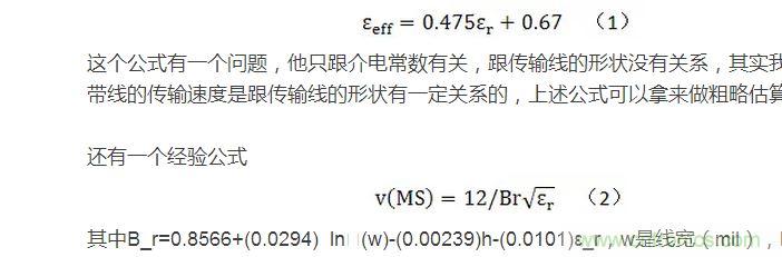 下面列舉幾個微帶線傳輸速度的經(jīng)驗(yàn)公式