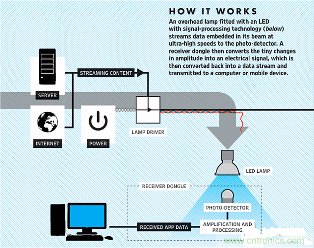 使用這種技術(shù)的LED燈泡不會(huì)出現(xiàn)視覺效果上的不同——光脈沖編碼的信息太微小,加上傳輸速度之快,肉眼是看不見的。此外,目前尚不清楚這種更快速的數(shù)據(jù)傳輸技術(shù)是否會(huì)增加LED燈和光學(xué)探測器的成本。