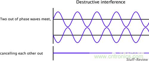 ANC技術的原理并不深奧,高中物理就教過,就是波的干涉。如果大家對高考復習還記憶猶新的話,一定還記得如果兩列波幅度相同,相位相反,則它們干涉的結果是互相抵消,看不到波了!
