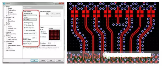 圖 5:利用支持射頻設(shè)計(jì)的PCB設(shè)計(jì)工具,您可以設(shè)定用于產(chǎn)生via模式的設(shè)計(jì)規(guī)則,并自動在您的設(shè)計(jì)中強(qiáng)制實(shí)施這些規(guī)則,從而節(jié)省您的時(shí)間和確保符合您的所有設(shè)計(jì)規(guī)則。