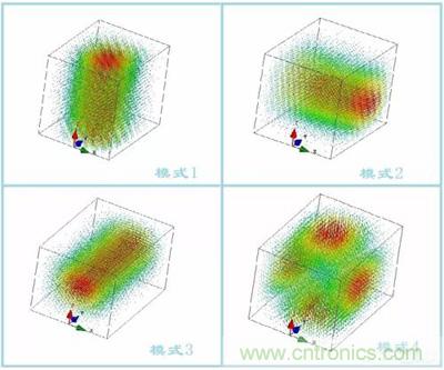 通過以上電場(chǎng)分布圖可以觀察到,單腔雙模,單腔三??梢宰杂蛇x擇。在高次模出現(xiàn)的頻率點(diǎn)上,通過選擇介電常數(shù),與控制諧振腔尺寸,對(duì)高次模進(jìn)行優(yōu)化。盡量拉遠(yuǎn)高次模出現(xiàn)的頻率,減小對(duì)通帶的影響。
