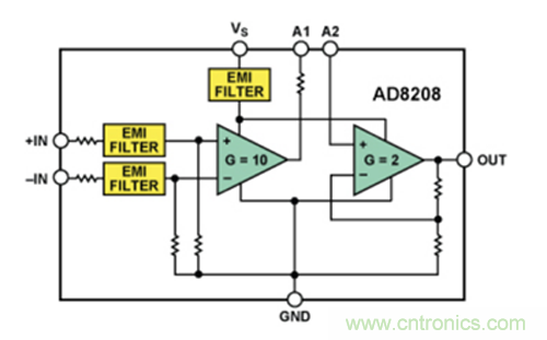 圖A. AD8208差動(dòng)放大器