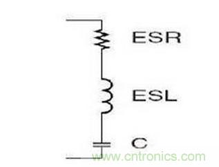 圖中ESR是電容的串聯(lián)等效電阻,ESL是電容的串聯(lián)等效電感,C才是真正的理想電容。ESR和ESL是由電容的制造工藝和材料決定的,沒(méi)法消除。那這兩個(gè)東西對(duì)電路有什么影響。ESR影響電源的紋波,ESL影響電容的濾波頻率特性。