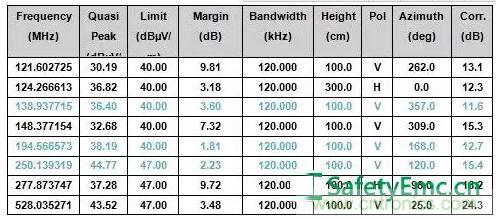 圖1:整機(jī)輻射發(fā)射測(cè)試數(shù)據(jù)