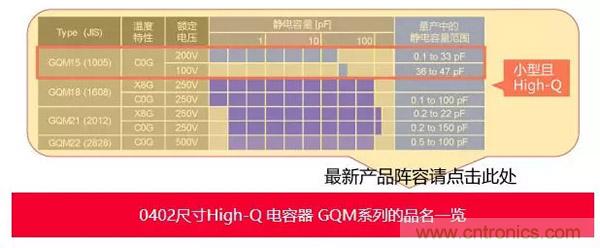 村田制作所的High-Q電容器除傳統(tǒng)的0603尺寸外,還新增0402尺寸到產(chǎn)品陣容。通過(guò)獨(dú)創(chuàng)的構(gòu)造、材料,即使靜電容量值很低,與標(biāo)準(zhǔn)規(guī)格產(chǎn)品(GRM系列)相比,也可實(shí)現(xiàn)高Q值。因兼具匹配用電容器的小型化和高Q值,有助于實(shí)現(xiàn)高頻PA電路設(shè)計(jì)的高密度化。