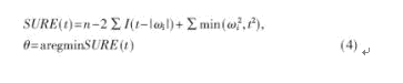 小波去噪的方法主要通過設(shè)置閾值來實現(xiàn),對漏磁信號的離散小波變換,計算所有小波系數(shù),剔除被認(rèn)為與噪聲有關(guān)的小波系數(shù),然后通過小波變換的逆變換得到信號。對于給定的信號,選取閾值的方法很多,本文使用的是基于Stein無偏風(fēng)險估計值最小化(SURE)的方法: