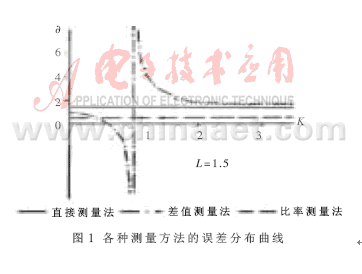 圖1表示取L=1.5時(shí)相對誤差隨元件值的分布情況。可以看出,比率測量法在很寬的測量范圍內(nèi)均具有良好的抗干擾能力。當(dāng)存在多個(gè)影響因素或者在分析由上述方法組合成的測量裝置時(shí),可根據(jù)疊加原理按系統(tǒng)誤差的理論綜合評定其精度。