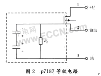 常見的熱釋電傳感器有p2613,p3782,p7187等。根據(jù)法拉第法則,人體的體溫約為3 7℃,輻射最多紅外線的波長是10μm左右,而p7187對7~20μm范圍波長比較靈敏,他采用了2個熱釋電元件PZT板,PZT板表面吸收紅外線,并在受光面的內(nèi)外各自安裝取出電荷的一對電極,能敏感的捕捉到被測物體或光源,具有很高的靈敏度。這2個受光電極反向串聯(lián),可有效地防止背景波動以及干擾光照射時的誤動作(一是環(huán)境變化引起的誤動作,二是使用光調(diào)制器時的誤動作)對傳感器的影響,當(dāng)2個受光電極同時受到紅外線照射時,輸出電壓相互抵消而無輸出,只有當(dāng)人體移動時才有電壓的輸出,輸出電壓比較精確的反映了人體移動的情況。P7187等效電路如圖2[2]。