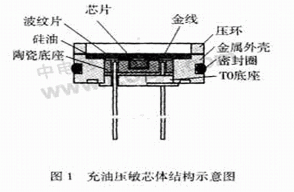 MEMS壓力傳感器的一一種重要封裝形式是采用充油的不銹鋼結構,稱為充油壓敏芯體,其基本制造工藝過程包括貼片、引線、封裝殼體、充油及二次組裝等。圖1是充油壓敏芯體結構示意圖,圖2是壓力傳感器二次封裝樣品。