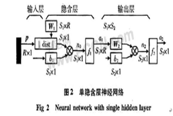 其中,p為輸入矢量,R為輸入矢量維數(shù),S1為隱含層神經(jīng)元個(gè)數(shù),S2為輸出層神經(jīng)元個(gè)數(shù),W1為隱含層神經(jīng)元權(quán)值矩陣,W2為輸出層權(quán)值矩陣,b1為隱含層神經(jīng)元閥值,b2為隱含層神經(jīng)元閥值,n1為隱含層輸入節(jié)點(diǎn),n2為輸出層節(jié)點(diǎn)。f1為S型函數(shù),f2為purelin型函數(shù)。神經(jīng)網(wǎng)絡(luò)算法是用于前饋多層網(wǎng)絡(luò)的學(xué)習(xí)算法。如果輸出不能得到期望的輸出,則轉(zhuǎn)入后向傳播。通過(guò)誤差的后向傳播調(diào)整各層之間的權(quán)系數(shù)。反復(fù)輸入樣本序列,直至權(quán)系數(shù)不在改變?yōu)橹?,輸出誤差在規(guī)定的范圍之內(nèi)。算法采用如下改進(jìn):1)采用模擬退火法以克服局部最??;2)用奇函數(shù)作激勵(lì)函數(shù)和傳播過(guò)程中采用新誤差傳播因子完善該算法收斂性問(wèn)題。