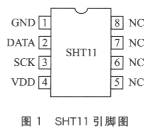 溫濕度傳感器SHTll集溫度傳感器和濕度傳感器于一體,因此采用SHTll進(jìn)行溫濕度實(shí)時(shí)監(jiān)測(cè)的系統(tǒng)具有精度高、成本低、體積小、接口簡(jiǎn)單等優(yōu)點(diǎn);另外SHTll芯片內(nèi)部集成了14位A/D轉(zhuǎn)換器,且采用數(shù)字信號(hào)輸出,因此抗干擾能力也比同類(lèi)芯片高。該芯片在溫濕度監(jiān)測(cè)、自動(dòng)控制等領(lǐng)域均已得到廣泛應(yīng)用。
