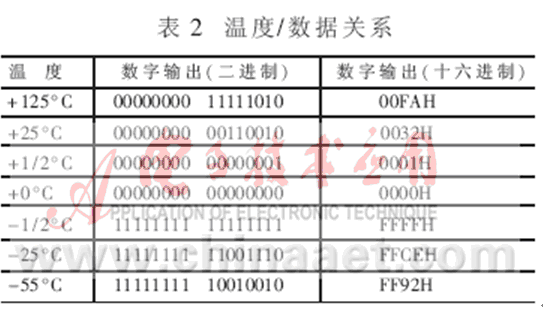 在實際應(yīng)用中,測量溫度往往在0°C以上,此時可只取16位二進制溫度輸出的低8位,即1個字節(jié),這樣將使計算和編程工作更為便利。