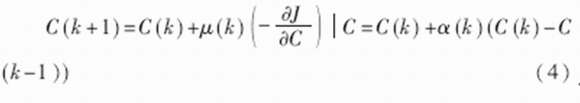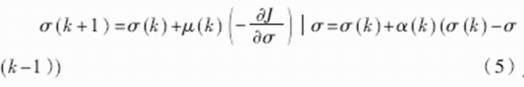 其中,μ(k)為學(xué)習(xí)率,α(k)為動量因子,也稱為遺忘因子,又稱動量項或阻尼項。將其稱為遺忘因子可從對于新舊信息的學(xué)習(xí)與遺忘的角度來理解;稱為動量項或阻尼項是因為在網(wǎng)絡(luò)的學(xué)習(xí)訓(xùn)練中,此項相當于阻尼力,當訓(xùn)練誤差迅速增大時,它使網(wǎng)絡(luò)發(fā)散得越來越慢。總之,它使網(wǎng)絡(luò)的變化趨于穩(wěn)定,有利于網(wǎng)絡(luò)的收斂。